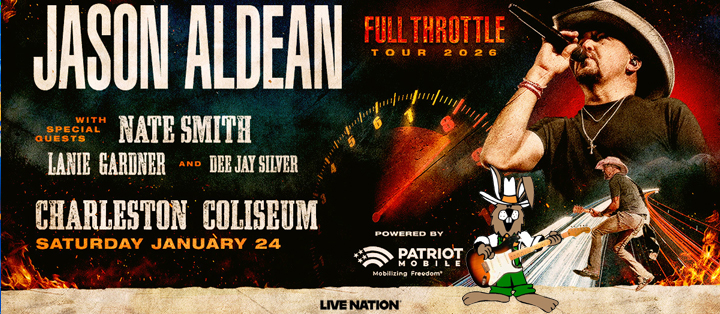 CLICK HERE FOR TICKETMASTER Jason Aldean: Full Throttle Tour 2026 w/ special guests Nate Smith, Lanie Gardner, Dee Jay Silver Charleston Coliseum – Saturday, January 24th
